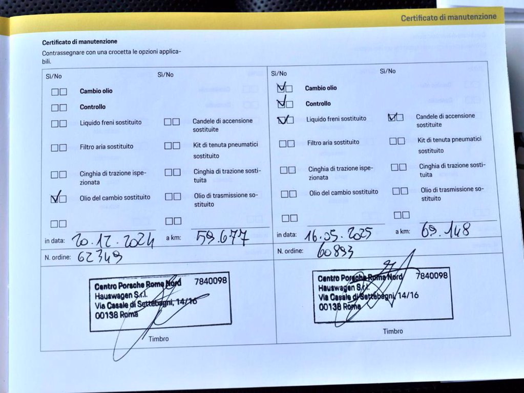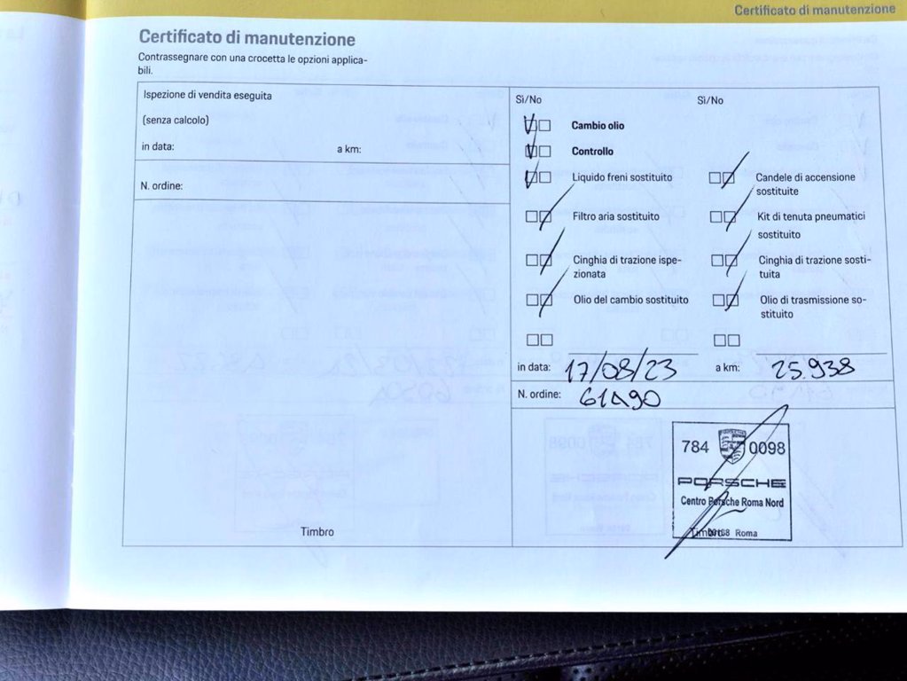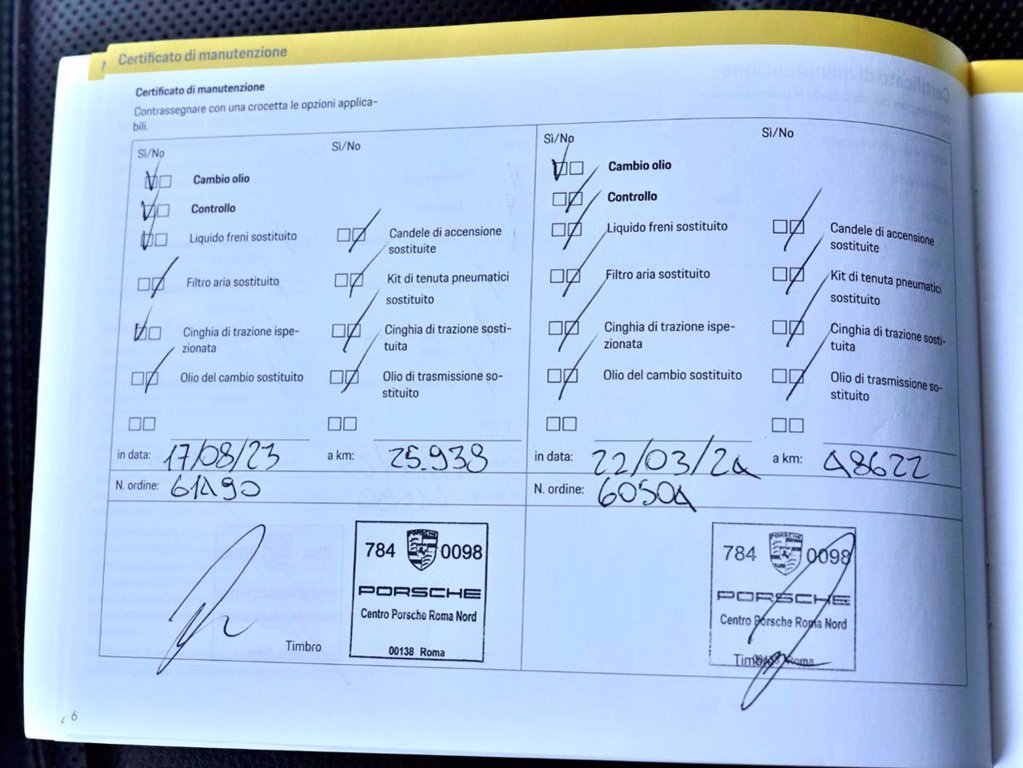 Vettura ufficiale italiana, regolarmente tagliandata presso reparto service Porsche come da documentazione allegata, tenuta in condizioni eccellenti. Colore Blu notte metallizzato, pacchetto pelle esteso in nero con finitura liscia, sideblade verniciato in colore esterno, logo Porsche verniciato in nero opaco, pdk a 7 rapporti, sospensioni pneumatiche adattive con sistema di livellamento e regolazione altezza incluso Porsche Active Suspension Management (PASM), pacchetto Sport Chrono incluso interruttore Mode, serbatoio Mode, serbatoio da 75l, servosterzo plus, cerchi in lega da 21 pollici RS Spyder Design, sigillante per pnaumatici e compressore d'aria elettrico, fari a led con Porsche Dynamic Light System plus, fari posteriori a led con fascia luminosa, vetri posteriori oscurati, parabrezza riscaldabile, park assist con telecamera, lane change assist, Porsche entry & drive, sedili comfort anteriori elettrici a 14 vie con pacchetto comfort memory, riscaldamento sedili anteriori, sedili anteriori ventilati, airbag posteriori, scompartimento per smartphone con ricarica wireless, Apple carplay con riconoscimento vocale Siri. Prezzo di listino € 95.000,00.